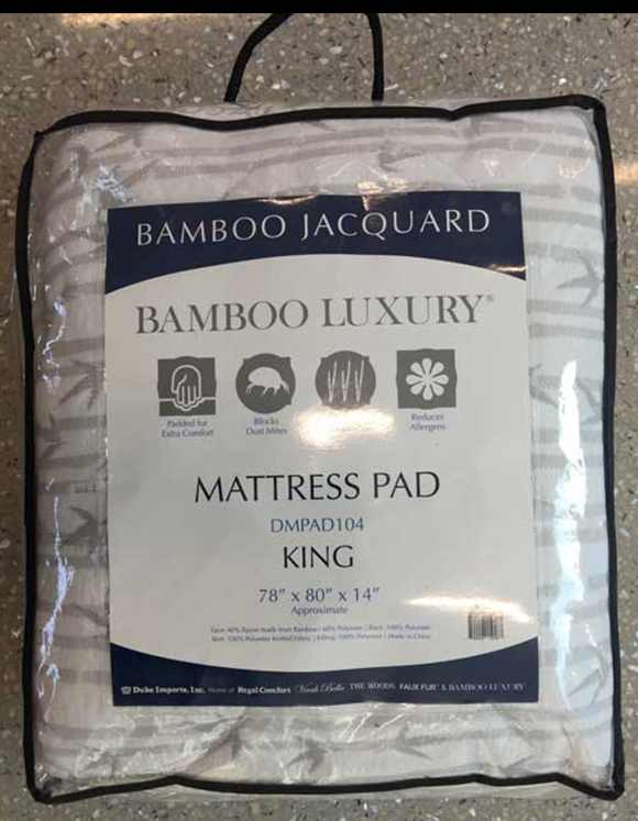 1″ thick quilted mattress pad covered in bamboo blend fabric. Goes on like a fitted sheet and stays on well – regardless of your mattress thickness. Breathes very well. Customer feedback has consistently been very positive – extremely comfortable!